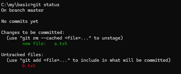 git add는 기록할 파일을 준비시키는 과정이다.git commit은 준비된 파일들을 하나의 버전으로 확정 짓는 과정이다.git status를 수시로 입력하며 현재 상태를 체크하는 습관을 들이자!