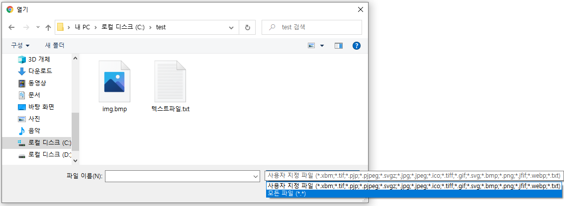 아래와 같이 파일 선택 시, '모든 파일(*.*)'을 선택할 경우,
