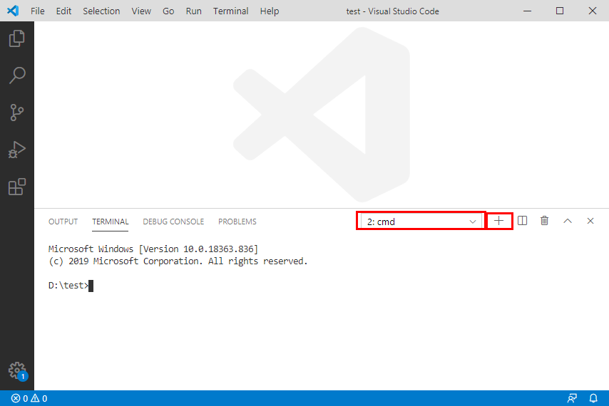 3. 터미널의 오른쪽 '+' 버튼을 누르면 'Command' 터미널이 추가되는 것을 확인 할 수 있습니다.