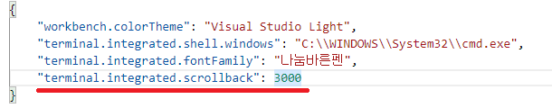 3. Settings.json 파일에 직접 터미널 버퍼 사이즈 지정하기