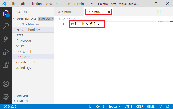 이제, b.html 파일은 edit 모드로 열린 것입니다.