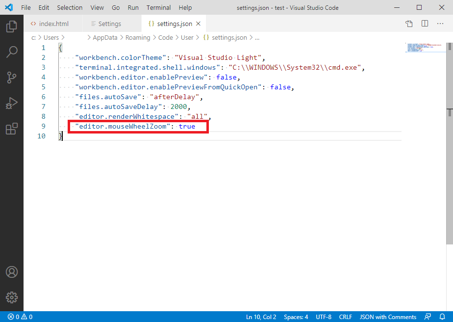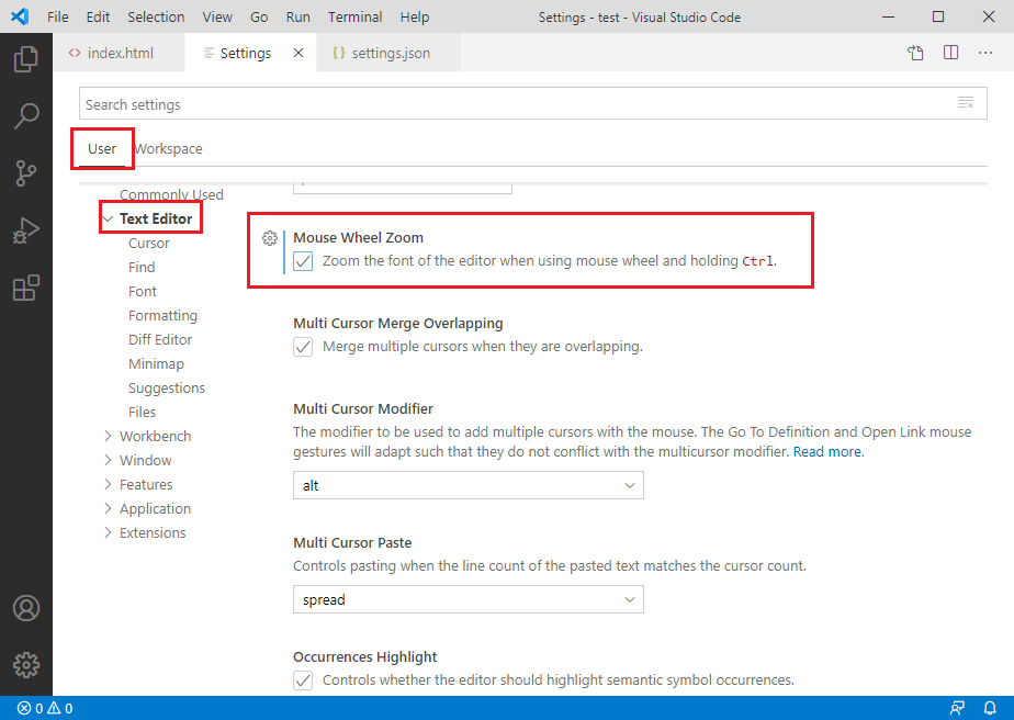 [VSCode] 마우스 휠 스크롤로 글자 확대/축소하기 본문