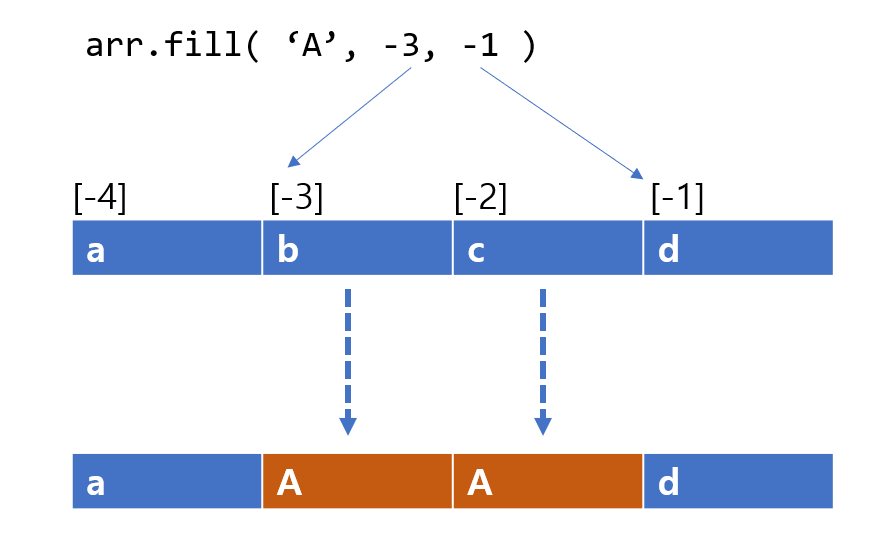 배열의 start index부터 end index 전까지(end index는 미포함) value값으로 채워주는 함수입니다.