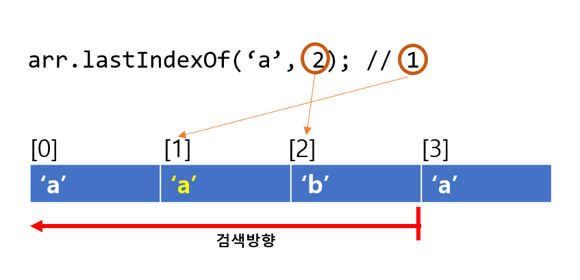 즉, fromIndex값을 입력하지 않으면, lastIndexOf 함수는 배열의 끝에서부터 역방향으로 배열을 탐색하여