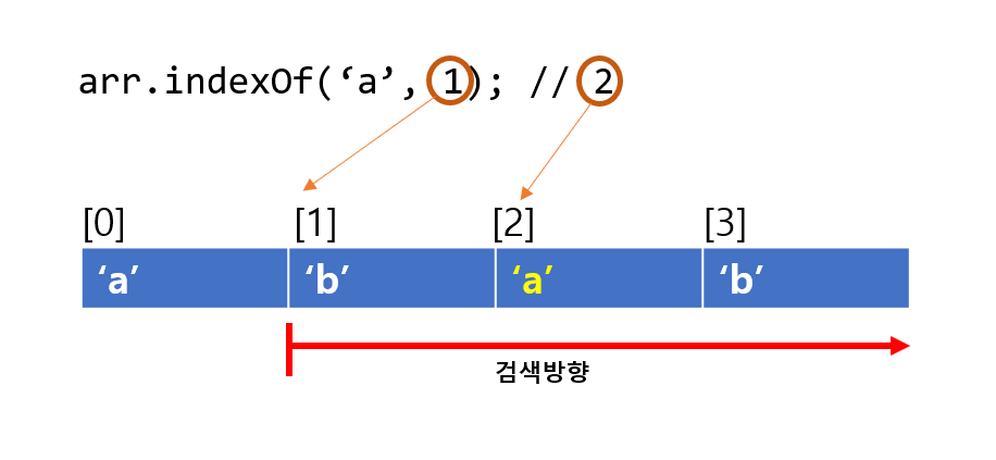 즉, fromIndex값을 입력하지 않으면, lastIndexOf 함수는 배열의 끝에서부터 역방향으로 배열을 탐색하여