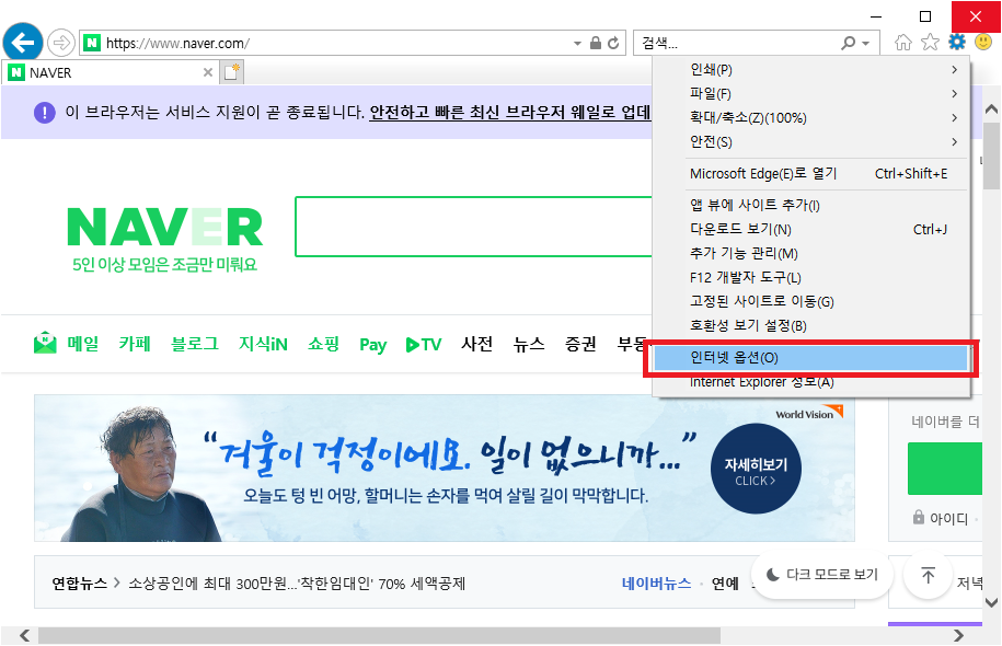 인터넷 익스플로러(IE) 링크 새탭/새창에서 열기 설정 본문