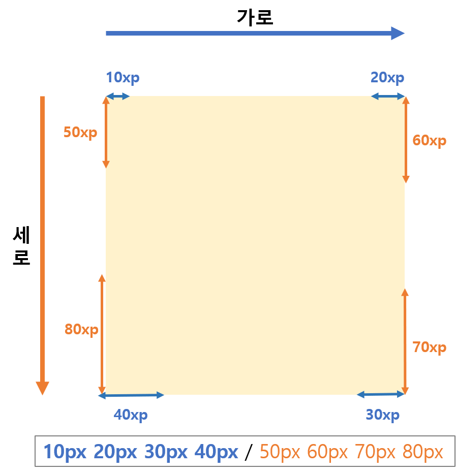 가로 변, 세로 변 모두 속성값의 갯수는 1~4개로 지정해서 사용할 수 있습니다.