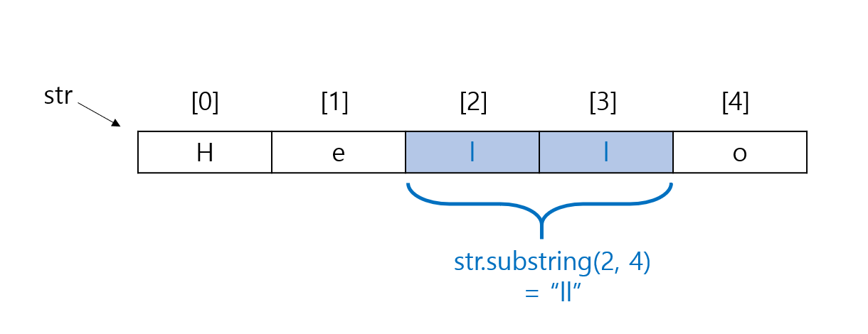 substring() 메소드에 2개의 파라미터를 전달하면(startIndex, endIndex)