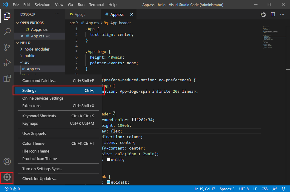 - File > Preperences > Settings 메뉴 이용