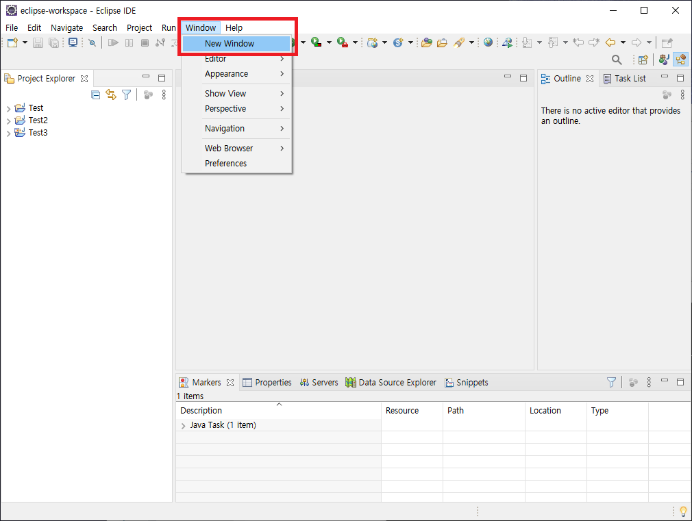 이클립스 창을 2개 이상 띄워서 사용하는 방법입니다.