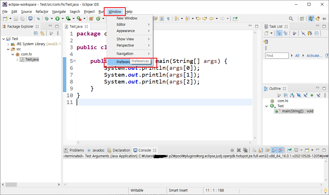 | [Java] 이클립스(Eclipse) 파라미터 전달하여 main() 실행하기 (0) | 2021.09.26 |