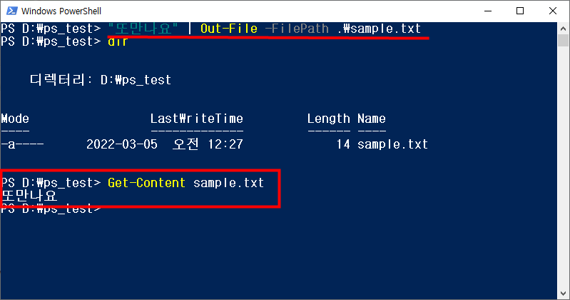 Set-Content와 Add-Content 명령어로도 새로운 텍스트 파일을 생성할 수 있습니다.