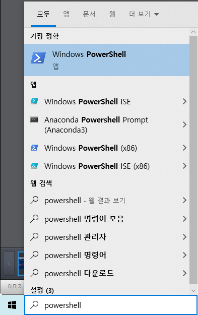 'powershell'을 검색하여