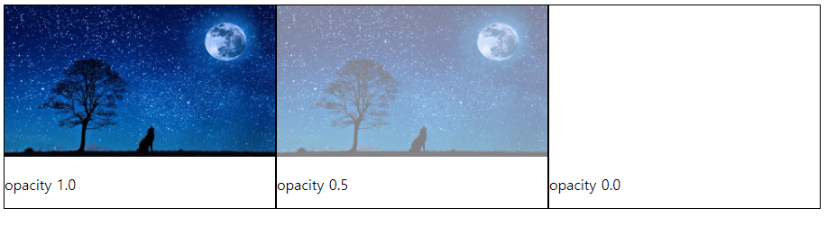 opacity를 1, 0.5, 0으로 적용한 예제입니다.