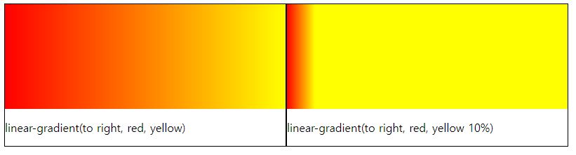 ex) to left : 오른쪽에서 왼쪽으로 그라데이션 색상이 적용됩니다. - to left bottom, to left top, to right bottom, to right top - 대각선