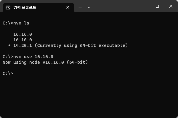 nvm install 16.16.0 // 16.16.0 버전의 설치