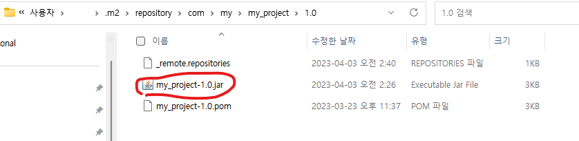 로컬의 다른 프로젝트에서 이 jar 파일을 참조할수 있게 됩니다.