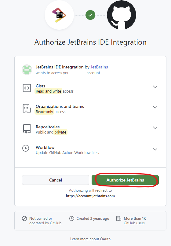 IntelliJ가 내 계정에 접근하여 Repository를 읽어올 수 있도록 인증합니다.