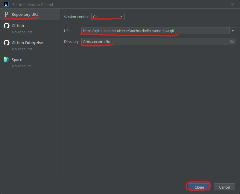 [IntelliJ] git 프로젝트 가져오기 (git clone) 본문