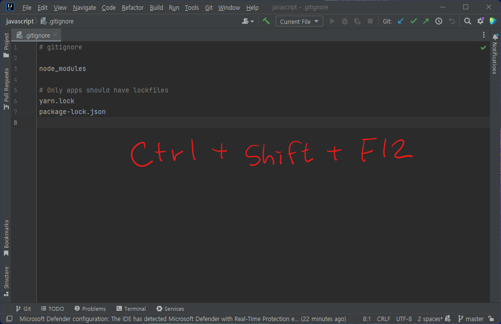 다시 한번, Ctrl + Shift + F12 를 누르면, 원래 화면으로 다시 돌아옵니다.