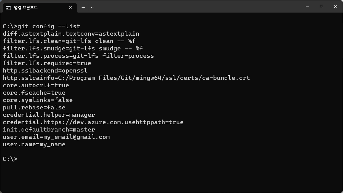 [Git] 터미널에서 계정 정보 조회 및 변경 (사용자 이름, 이메일) 본문