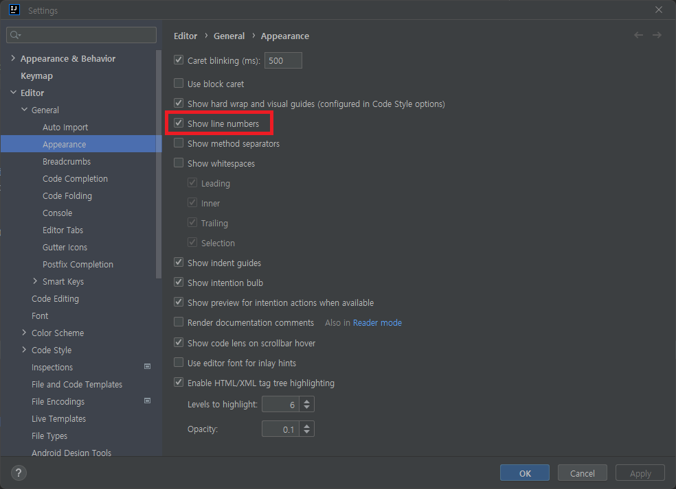 [IntelliJ] 라인 넘버 보이기, 숨기기 2가지 방법 본문