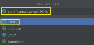 여기서는 다음 패키지와 클래스 명을 입력하였습니다.