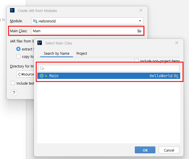 jar 파일이 저장될 디렉토리를 확인하고, 'OK' 버튼을 클릭합니다.