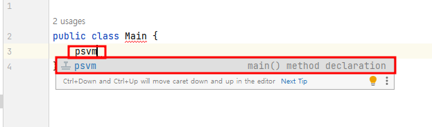 'psvm'은 public static void main의 약자입니다.