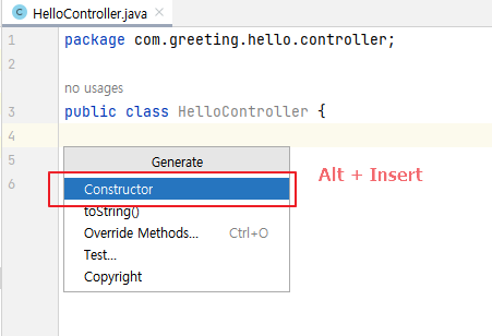 2. Constructor 메뉴를 선택합니다.