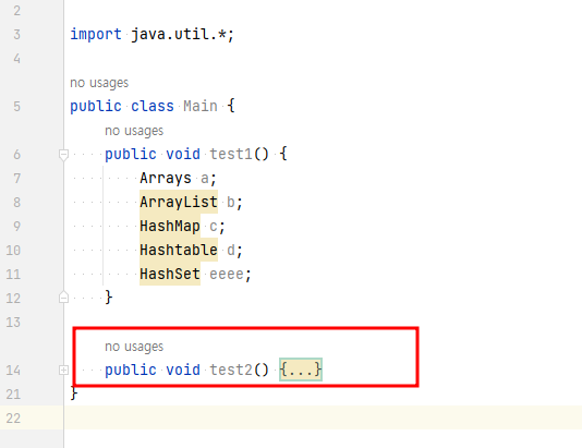 인텔리제이에서 메소드를 접고 펼치는 방법과