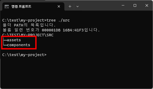 주어진 경로(./src)의 폴더 구조를 보여줍니다.