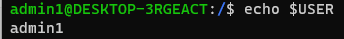 환경변수 $USER를 출력합니다. $USER 변수는 현재 사용자의 이름을 저장하고 있습니다.