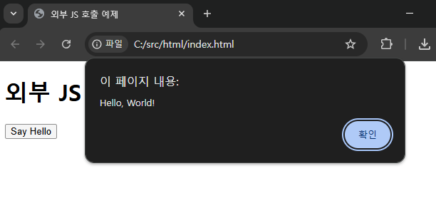 - 버튼을 클릭하면 script.js에 정의된 sayHello() 함수가 호출됩니다.
