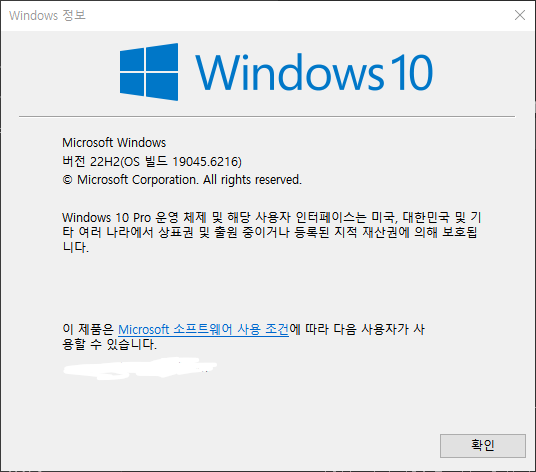 - 실행창에 winver 입력 후 Enter를 누릅니다.